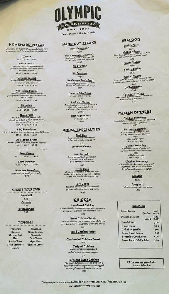 Speaking of the atmosphere, Olympic Steak & Pizza provides a casual yet vibrant setting, perfect for family gatherings or casual nights out with friends. With options for both indoor and outdoor seating, complimentary bicycle parking, and a focus on accessibility, the restaurant goes above and beyond to make every guest feel welcome. Their moderate noise level and kid-friendly environment make it an ideal choice for groups of all ages.